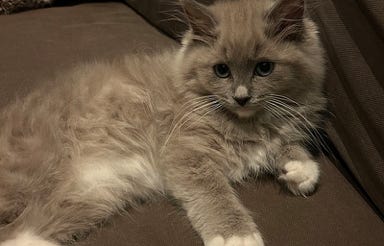 Karakter: Super lieve en sociale poes die enorm betrokken is bij onze gezinsactiviteiten. Ze is erg gehecht aan ons en ligt graag bij ons op de bank of op schoot. Ze is zoals een Maine Coon hoort te zijn ook erg ondeugend in de keuken en speels.