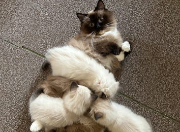 Karakter: Super lieve poes.. Ze is heel aanhankelijk en vraagt aandacht op een aparte manier. Ze gaat regelmatig op haar achterpoten staan en dan door met haar voorpoten te maaien wil ze iets vragen. Ze houdt dan haar hoofd ook vaak scheef waardoor ze echt iets vraagt. Zo schattig! Ze heeft al bewezen een superlieve moeder te zijn. Haar kindjes zijn haar alles en zorgt er super goed voor.